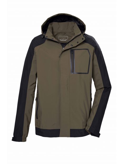Jacheta funcțională pentru bărbați de la Killtec într-un design color block, este alegerea perfectă pentru toate activitățile în aer liber. Are cusături sudate și este rezistentă la apă și vânt cu o coloană de apă de 10.000 mm. De asemenea, este respirabilă cu o permeabilitate la vapori de apă de 3.000 g/m²/24h. Gluga este reglabilă și poate fi scoasă dacă este necesar. Manșetele pot fi reglate cu velcro. Lățimea tivului poate fi reglată cu ajutorul unui șnur. Fermoarul ascuns are o bărbie care previne ciupirea pielii. Cele două buzunare laterale și buzunarul de la piept se pot închide astfel încât să nu se piardă nimic. Această jachetă a fost impregnată fără PFAS.