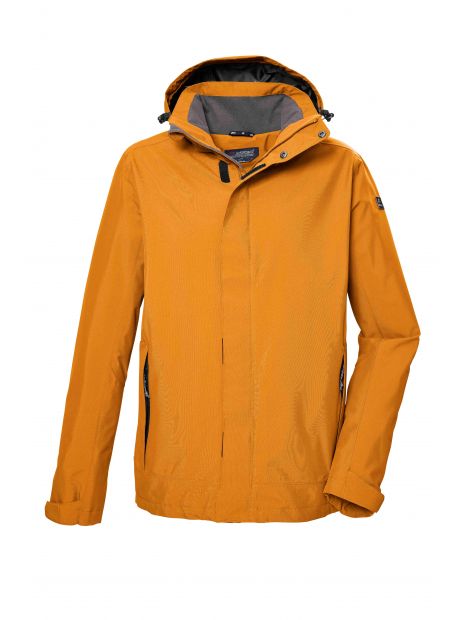 Jacheta funcțională pentru bărbați de la Killtec cu glugă cu fermoar, are cusături sudate și este impermeabilă și rezistentă la vânt cu o coloană de apă de 10.000 mm. În același timp, este respirabilă cu o permeabilitate la vapori de apă de 3.000 g/m²/24h. Manșetele pot fi ajustate cu ajutorul velcro. Lățimea tivului poate fi reglată cu un șnur. Fermoarul ascuns are o bărbie practică ce previne ciupirea pielii. Cele două buzunare laterale pot fi închise cu fermoare, iar două buzunare interioare oferă spațiu suplimentar de depozitare. Această jachetă este impregnată fără PFAS și este parțial realizată din material reciclat.