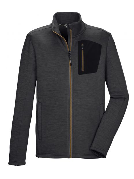 Jacheta powerstretch pentru bărbați de la Killtec în aspect melange este potrivită ca o jachetă subțire de tranziție sau ca strat intermediar de încălzire sub jacheta rezistentă la intemperii. Conținutul stretch promite un nivel ridicat de confort. Cele două buzunare laterale și buzunarul de la piept colorat contrastant pot fi închise cu fermoare. Apărătoarea pentru bărbie de pe fermoar previne ciupirea pielii.