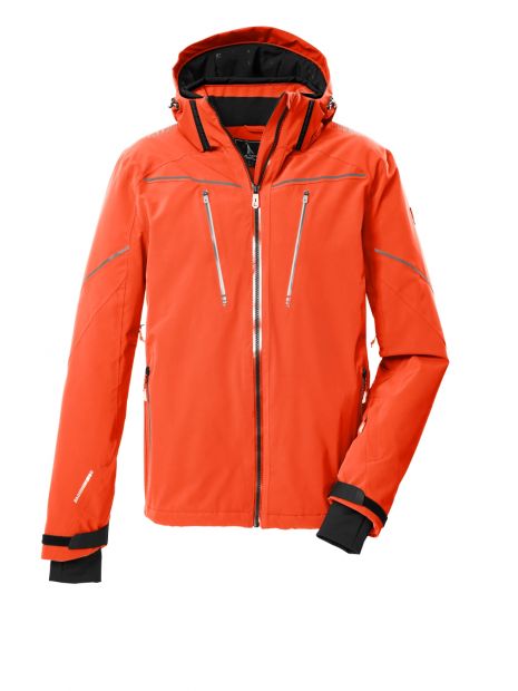 Jacheta de ski pentru bărbați de la Killtec impresionează prin proprietăți extrem de funcționale și caracteristici inteligente. Învelișul respirabil Dermizax promite un echilibru optim între izolație și respirabilitate (10.000 g/m²/24 h). Ventilația la subrat asigură o climă plăcută a corpului. Jacheta are cusături cu bandă, fermoar rezistent la apă și este impermeabilă și rezistentă la vânt cu o coloană de apă de 20.000 mm. Materialul elastic în 4 direcții urmărește fiecare mișcare. Dotată cu o apărătoare de zăpadă antiderapantă, diverse buzunare și o cârpă de curățat ochelari, jacheta nu lasă nimic de dorit. Gluga și tivul cu fermoar sunt reglabile. Manșetele reglabile sunt echipate cu manșete din Lycra. Jacheta este echipată și cu elemente reflectorizante la modă.