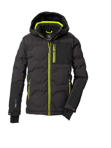 Jacheta funcțională matlasată pentru copii de la Killtec cu glugă reglabilă se remarcă prin designul modern, cu camere sudate decorative, accesorii în culori contrastante și elemente reflectorizante. Jacheta este rezistentă la vânt și impermeabilă cu o coloană de apă de 10.000 mm. Apărătoarea de zăpadă este prevăzută cu un strat de cauciuc antiderapant. Manșetele pot fi reglate cu velcro și sunt echipate cu manșete confortabile din Lycra, cu orificii pentru degetul mare. Diverse buzunare în interior și în exterior oferă spațiu amplu de depozitare pentru telefonul mobil, permisul de ski și alte obiecte esențiale. Această jachetă a fost impregnată fără PFA.