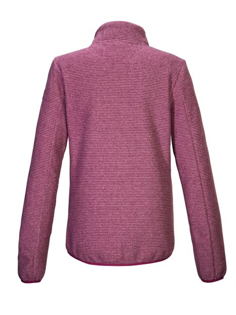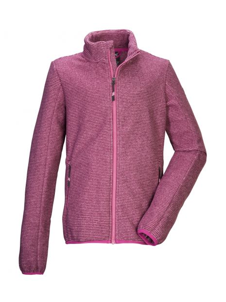 Jacheta din fleece tricotată de la Killtec, cu guler înalt, într-un aspect în dungi, ține copiilor de cald. Fermoarul din față are o protecție pentru bărbie pentru a preveni ciupirea pielii. Tivul și manșetele sunt elastice. Cele două buzunare laterale pot fi închise cu fermoare, astfel încât nimic să nu se piardă.