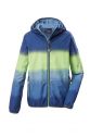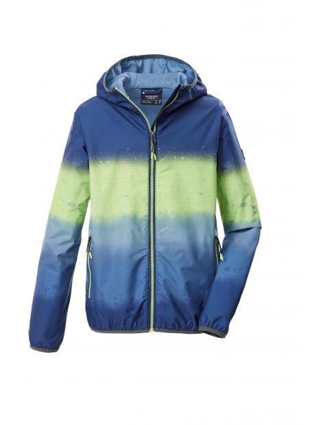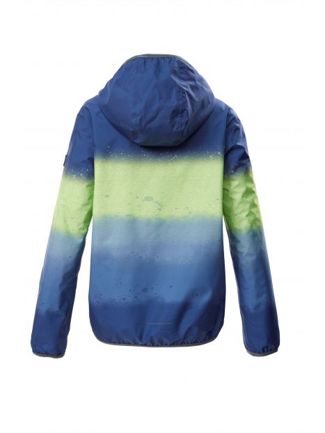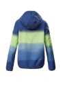 Jachetă funcțională pentru copii, ușoară, rezistentă la vânt, cu glugă; impermeabilă datorită cusăturilor sudate, coloană de apă de 10.000 mm; finisaj regenerativ Teflon EcoElite™; manșete și tiv elastice, fermoar cu apărătoare pentru bărbie; buzunare practice, imprimeu gradient pe toată suprafața.