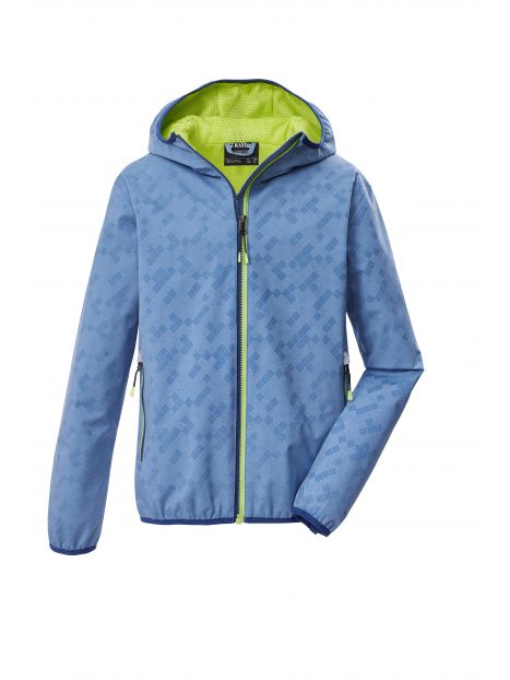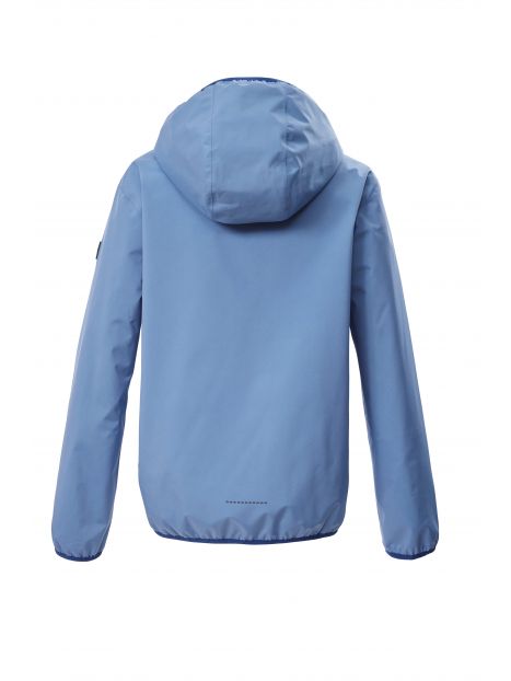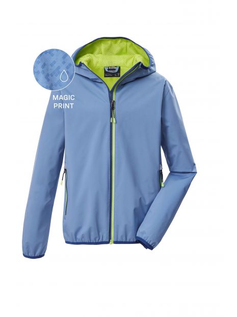 Jachetă funcțională ușoară, rezistentă la vânt, pentru copii, cu glugă; impermeabilă datorită cusăturilor sudate, coloană de apă de 10.000 mm; finisaj regenerativ Teflon EcoElite™; manșete și tiv elastice, fermoar cu apărătoare pentru bărbie; buzunare practice cu fermoar, imprimeu special Magic Print.