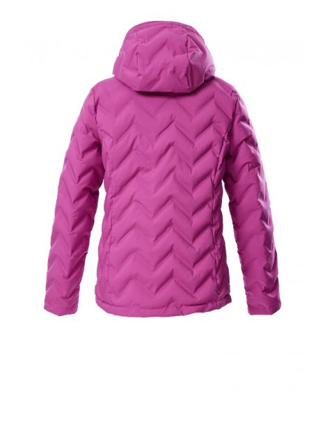 Jacheta funcțională matlasată de damă de la Killtec este polivalentul perfect pentru sezonul mai rece. Este rezistentă la apă și vânt cu o coloană de apă de 10.000 mm și în același timp respirabilă. Gluga și manșetele sunt reglabile. Cele două buzunare laterale pot fi închise cu fermoare, astfel încât nimic să nu se piardă. Jacheta are un buzunar pentru telefonul mobil in interior. Fermoarul frontal este echipat cu o bărbie practică, care previne ciupirea pielii. Această jachetă a fost impregnată cu agenți fără fluor și a fost parțial realizată din material reciclat.