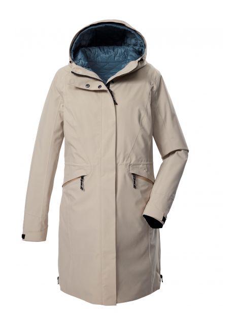 Jacheta funcțională 3 în 1 versatilă de la Killtec este o jachetă universală. Jacheta outdoor are caracteristici funcționale. Cu o coloană de apă de 10.000 mm, un fermoar impermeabil și cusături sudate, este impermeabilă și rezistentă la vânt. De asemenea, este respirabilă (3.000 g/m²/24 h). Gluga este reglabilă. Fermoarul ascuns în 2 căi și fermoarele laterale asigură multă libertate de mișcare. Manșetele pot fi ajustate cu ajutorul velcro. Diverse buzunare oferă spațiu pentru telefonul mobil, chei etc. Un aspect deosebit este jacheta suplimentară matlasată, care poate fi pusă sau scoasă cu fermoar cu ușurință. Acest lucru vă permite să adaptați jacheta în mod flexibil la orice condiții meteorologice. Această jachetă a fost impregnată cu material fără PFAS și este parțial realizată din material reciclat.