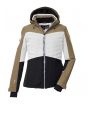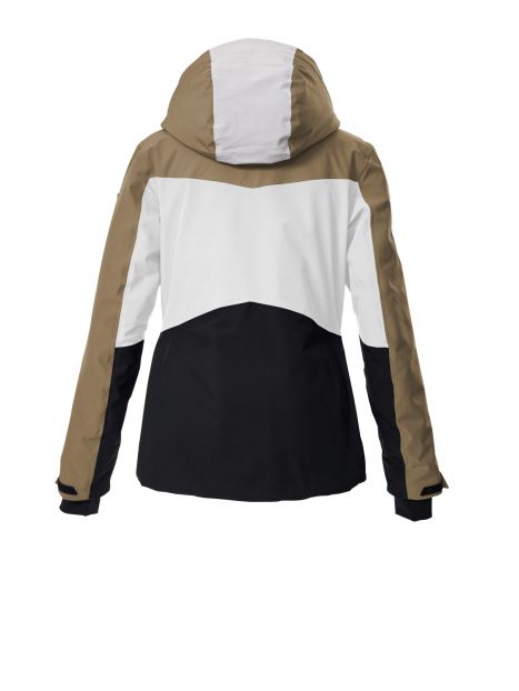 Jacheta de ski pentru femei de la Killtec combină un design colorblock la modă cu caracteristici potrivite pentru pârtii. Este rezistentă la apă și vânt, cu o coloană de apă de 10.000 mm și toate cusăturile critice sunt sudate. În același timp, este respirabilă cu o permeabilitate la vapori de apă de 3.000 g/m²/24 de ore. Interiorul jachetei este echipat cu o apărătoare de zăpadă cauciucată, antiderapantă, un buzunar pentru ochelari de ski și un buzunar pentru telefonul mobil. Patru buzunare cu fermoar la exterior oferă spațiu suplimentar de depozitare. Lățimea glugăi și a tivului cu fermoar pot fi ajustate. Fermoarul rezistent la apă are o protecție pentru bărbie pentru a preveni ciupirea pielii. Manșetele din lycra cu găuri pentru degetul mare la capetele reglabile ale mânecilor împiedică pătrunderea frigului și a vântului. Această jachetă a fost impregnată fără PFA și este parțial realizată din material reciclat.