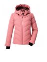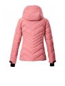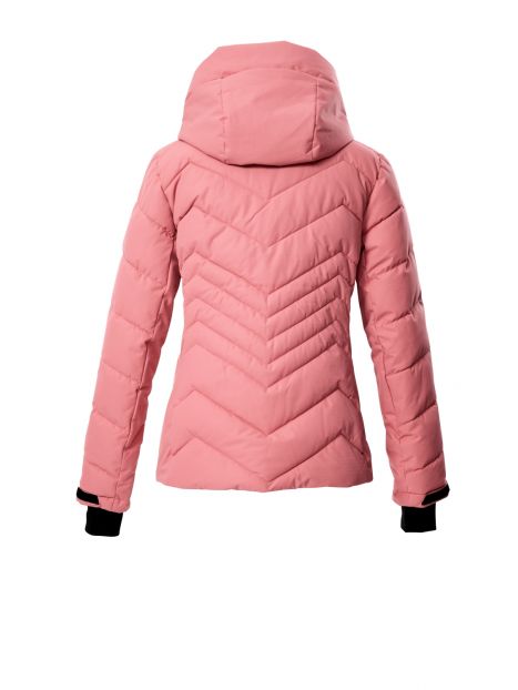 Jacheta de ski pentru femei de la Killtec impresionează prin aspectul modern matlasat și caracteristicile funcționale. Jacheta este rezistentă la vânt și impermeabilă, cu o coloană de apă de 10.000 mm și respirabilă, cu o permeabilitate la vapori de apă de 3.000 g/m²/24 de ore. Toate cusăturile critice sunt sudate. O apărătoare de zăpadă antiderapantă, cauciucată, protejează împotriva vântului și a frigului. Numeroase buzunare oferă spațiu pentru permise de ski, ochelari de ski etc. Manșetele reglabile au manșete din Lycra cu orificii pentru degetul mare. Gluga este reglabilă pe lățime și lungime. Fermoarul frontal rezistent la apă are o protecție pentru bărbie pentru a preveni ciupirea pielii. Această jachetă a fost impregnată fără PFA și este parțial realizată din material reciclat.