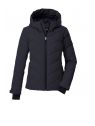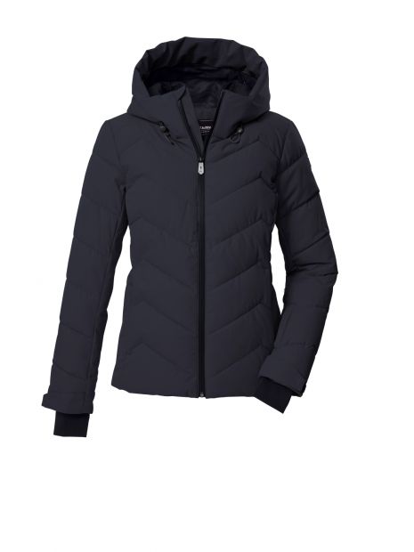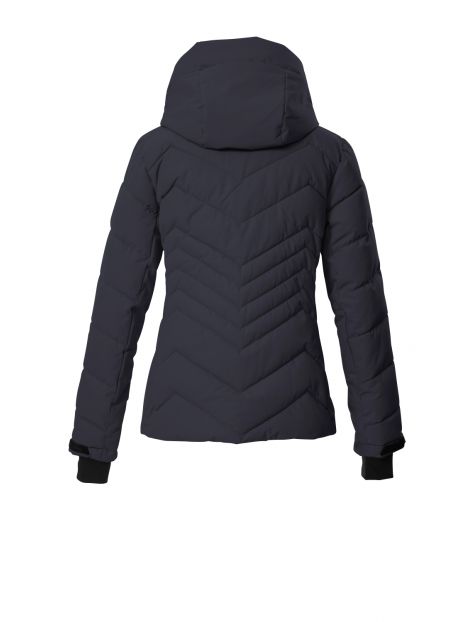 Jacheta de ski pentru femei de la Killtec impresionează prin aspectul modern matlasat și caracteristicile funcționale. Jacheta este rezistentă la vânt și impermeabilă, cu o coloană de apă de 10.000 mm și respirabilă, cu o permeabilitate la vapori de apă de 3.000 g/m²/24 de ore. Toate cusăturile critice sunt sudate. O apărătoare de zăpadă antiderapantă, cauciucată, protejează împotriva vântului și a frigului. Numeroase buzunare oferă spațiu pentru permise de ski, ochelari de ski etc. Manșetele reglabile au manșete din Lycra cu orificii pentru degetul mare. Gluga este reglabilă pe lățime și lungime. Fermoarul frontal rezistent la apă are o protecție pentru bărbie pentru a preveni ciupirea pielii. Această jachetă a fost impregnată fără PFA și este parțial realizată din material reciclat.