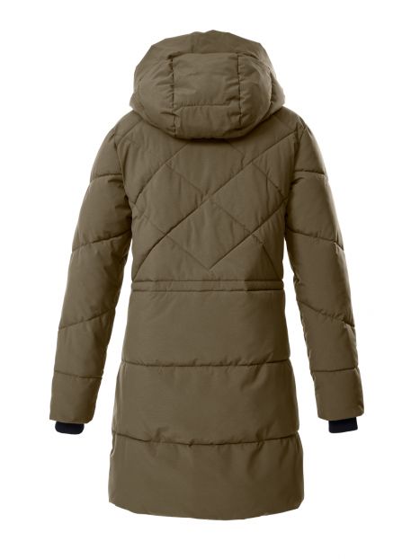 Această parka funcțională, cu căptușeală groasă și matlasare modernă, de la G.I.G.A DX, este alegerea perfectă pentru iarnă. Este hidrofugă și rezistentă la vânt, cu o coloană hidrostatică de 8.000 mm. De asemenea, este respirabilă. Gluga mare este reglabilă. Manșetele tricotate vă țin de cald și sunt deosebit de confortabile. Fermoarul bidirecțional poate fi deschis de sus și de jos, permițând libertate de mișcare. Două buzunare mari cu fermoar și un buzunar interior oferă spațiu de depozitare pentru telefon, chei și alte obiecte esențiale. Această parka a fost tratată cu o impregnare fără PFA și este fabricată parțial din materiale reciclate.