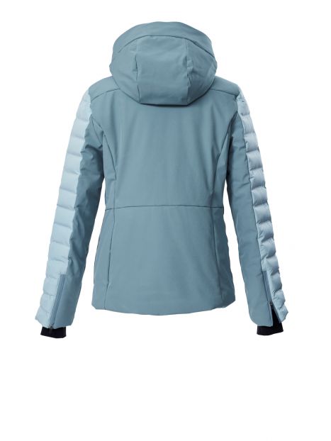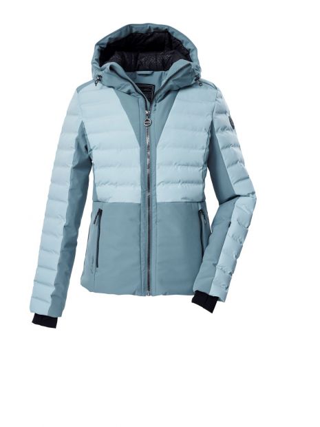 Această jachetă funcțională pentru femei de la Killtec impresionează prin aspectul său matlasat, designul colorblock și caracteristicile funcționale. Jacheta este rezistentă la vânt și hidrofugă, cu o coloană hidrostatică de 10.000 mm și respirabilă, cu o permeabilitate la vapori de apă de 3.000 g/m²/24 h. Fleece-ul moale de pe spate oferă o căldură plăcută. O apărătoare de zăpadă antiderapantă protejează împotriva vântului și a frigului. Numeroase buzunare oferă spațiu pentru abonamente de ski, ochelari de ski și alte obiecte esențiale. Manșetele din lycra au orificii pentru degetele mari. Gluga este reglabilă. Fermoarul frontal are o apărătoare de bărbie pentru a preveni ciupirea. Această jachetă are un finisaj impermeabil fără PFAS și este fabricată parțial din materiale reciclate.