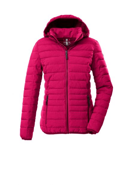 Această jachetă matlasată pentru femei, cu croială strâmtă, în stil urban atemporal, de la G.I.G.A. DX, este rezistentă la vânt și apă, având o coloană de apă de 8.000 mm. Umplutura ușoară o face ideală pentru anotimpurile de tranziție și toamnă. Gluga protejează împotriva vântului și a intemperiilor. Tivul și manșetele sunt elastice pentru o potrivire perfectă. Cele două buzunare laterale au fermoare pentru a preveni pierderea. Fermoarul frontal are o apărătoare practică pentru bărbie. Această jachetă a fost tratată cu un finisaj impermeabil fără PFA și este fabricată parțial din materiale reciclate.