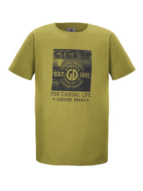 Tricoul pentru bărbați de la G.I.G.A. DX este partenerul perfect pentru ținutele casual de vară. Este confecționat din bumbac organic certificat GOTS cu finisaj carbon și promite o croială confortabilă. Imprimeul mare de pe piept îi conferă o notă casual.