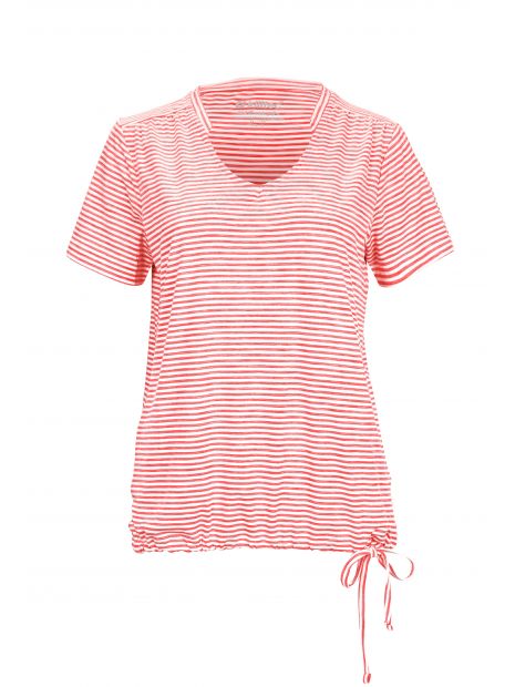 Este un tricou sportiv, cu dungi, realizat dintr-un material funcțional care se usucă repede. Impresionează prin calitatea sa și confortul plăcut la purtare. Fie pentru activități în aer liber sau pentru agrement, designul simplu și stretch-ul îl fac versatil și ușor de combinat.